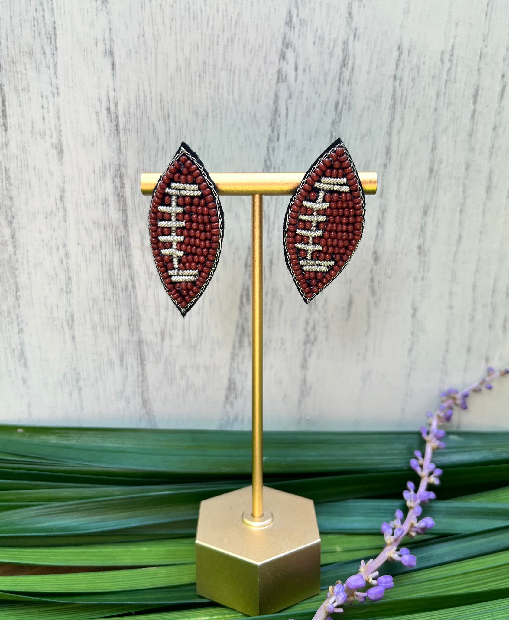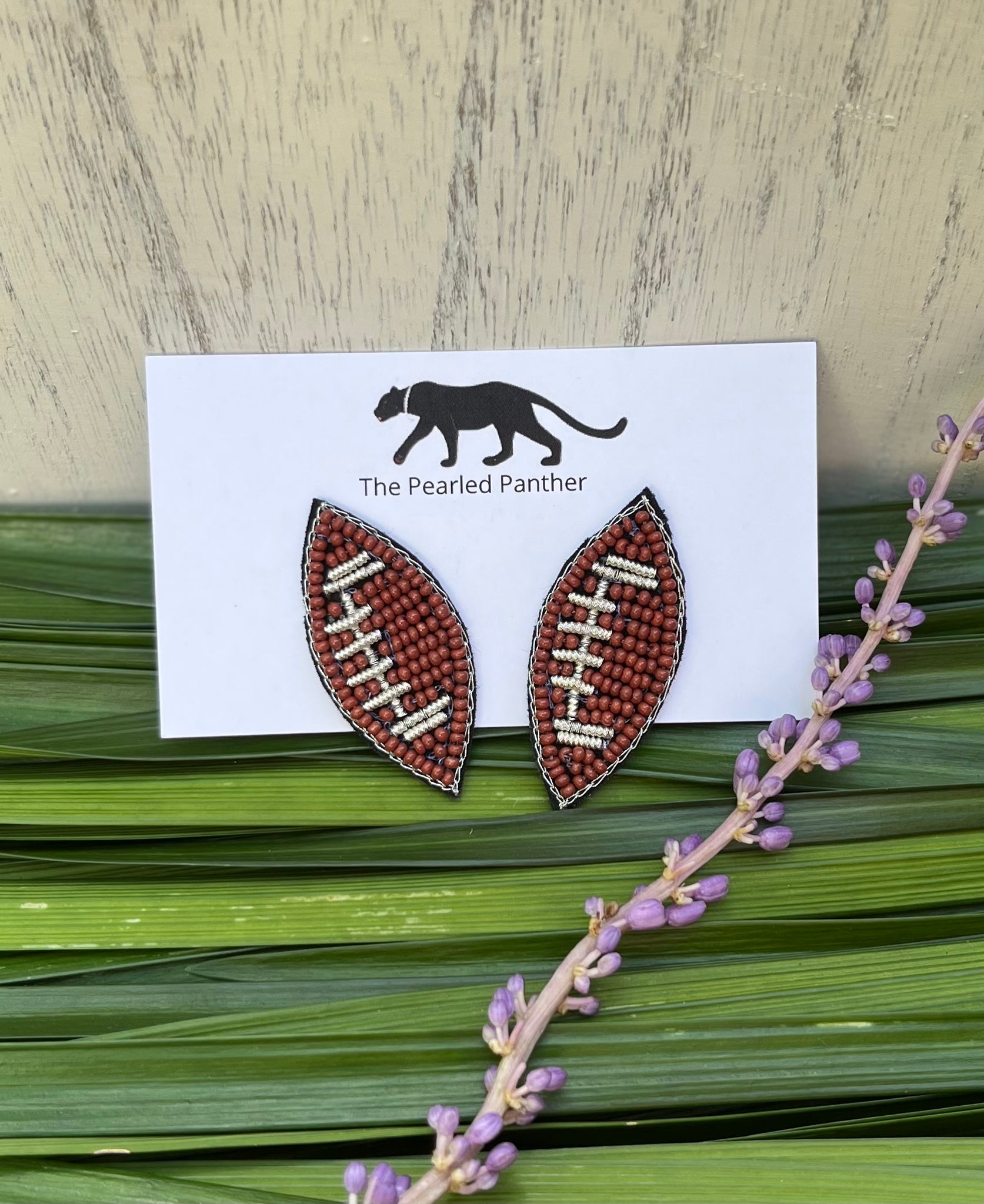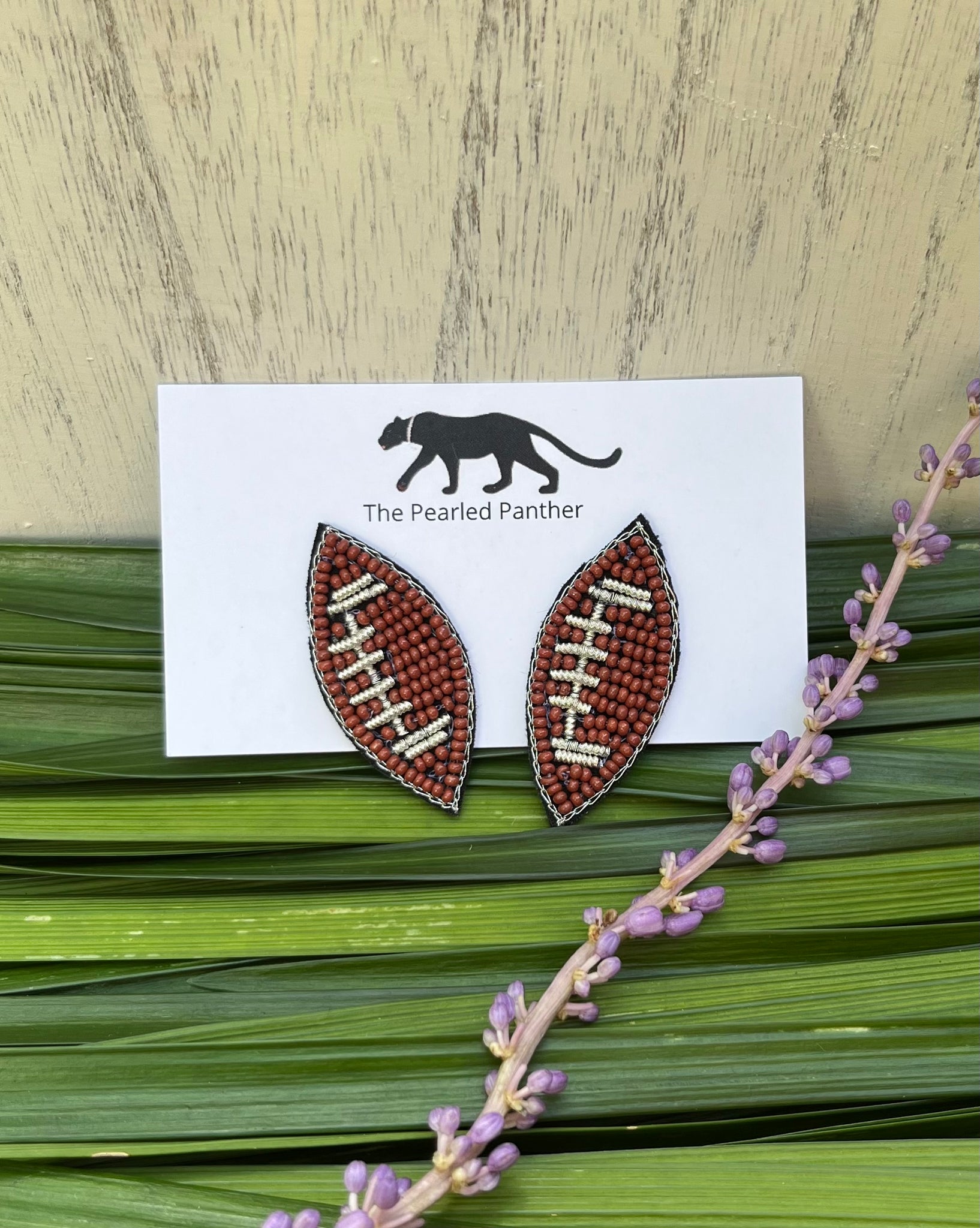 Get ready for Football Season! Beaded Football Stud Earrings. Hypoallergenic Nickel Free posts and extremely lightweight.